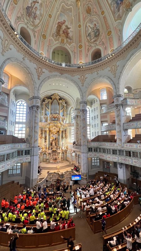 Zu Beginn der World Transplant Games fand ein „Interfaith Celebration“ in der Frauenkirche von Dresden statt. Dort bekam jeder am Eingang ein Band geschenkt, das wir während des Gottesdienstes alle miteinander verknüpften. Es war so ein besonderer Moment, indem wir eine besondere Gemeinschaft spürten.