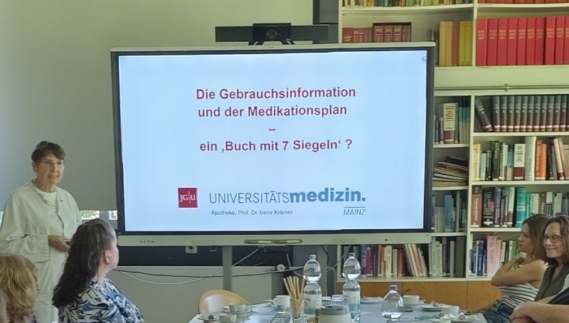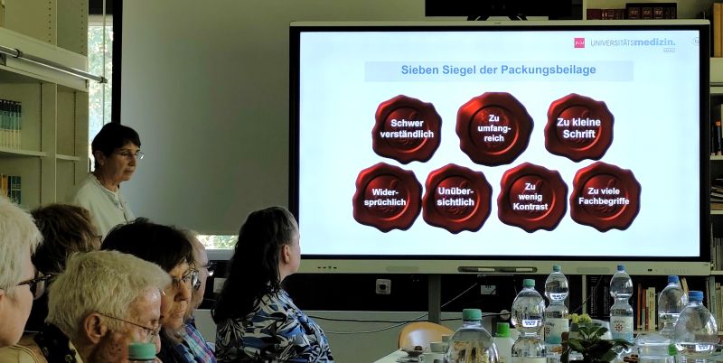 Danach begann der Vortrag von Prof. Irene Krämer zum Thema „Medikamente Gebrauchsinformation und Medikamentenplan“. Das ist „Ein Buch mit 7 Siegeln“.