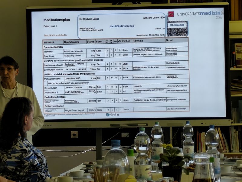 Zu unserem Treffen kamen 28 Betroffene sowie Frau Prof. Dr. rer. nat. Irene Krämer (Direktorin der Apotheke der Unimedizin Mainz) und Frau Dr. rer. nat. Alina Walter. Bei einem gemütlichen Beisammensein mit Kaffee und Kuchen haben Mariele Höhn und Elke Aryeequaye sich kurz vorstellt und informierten über verschiedene Termine und über die „World Transplant Games“, die im August in Dresden stattgefunden haben.