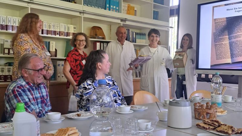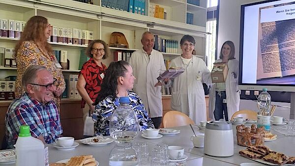 Da an diesem Tag Frau Prof. Dr. Krämer ihren Abschied feierte (sie geht zum 30.09.2025 in ihren wohlverdienten Altersruhestand), haben Mariele Höhn und Elke Aryeequaye ihr ein Abschiedsgeschenk überreicht. Frau Prof. Dr. Krämer hat sich sehr über den Vogelnistkasten für ihren Garten, mit Aufschrift „Apotheke“, gefreut.