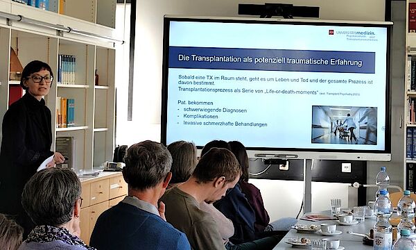 Dann begann Frau Scheurich ihre Präsentation über Psychosomatische Aspekte der LTX (Transplantation und Trauma). Die Präsentation beinhaltete folgende Punkte: