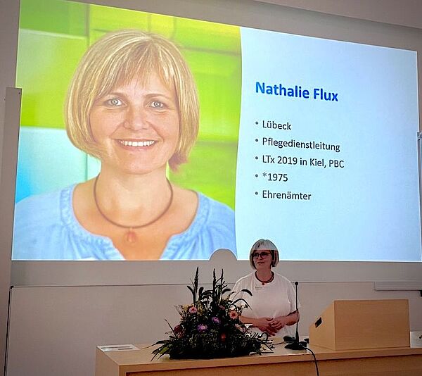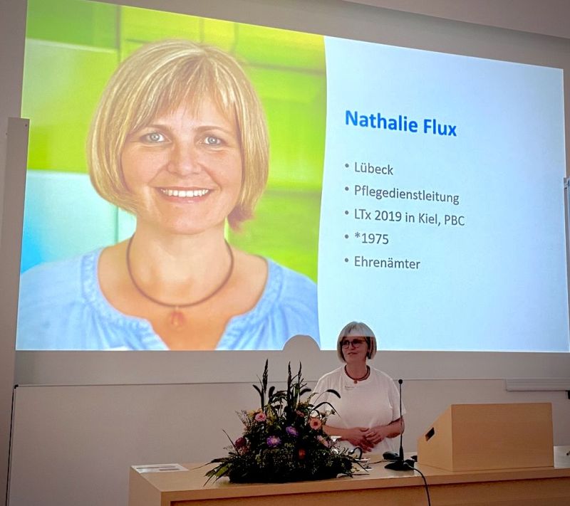An unserem Infostand konnten wir andererseits als Transplantierte von unseren Erfahrungen als Patienten und zum Leben mit einem Spenderorgan berichten. Eine sehr besondere Perspektive bot unsere Ansprechpartnerin Nathalie Flux aus Lübeck. In ihrem Vortrag beschreibt sie punktgenau aus Sicht der Krankenschwester, was im arbeitsintensiven Krankenhausalltag in der Versorgung der Patienten zunehmend verloren geht und gleichzeitig für sie als transplantierte Patientin für ihre Genesung und somit für den Erfolg der Behandlung so wichtig war.
