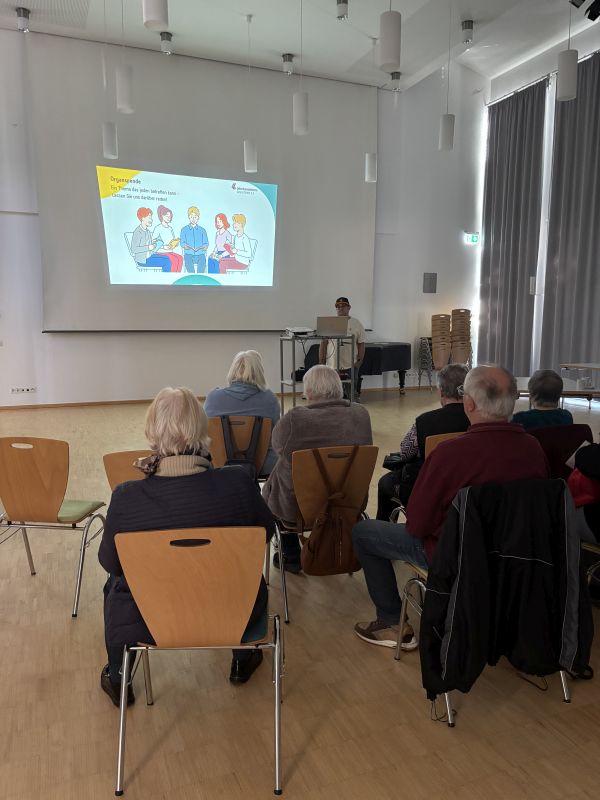 Im Rahmen eines Seniorennachmittags fand am 14. Oktober 2025 in Durlach bei Karlsruhe ein Vortrag zum Thema Organspende statt. Als Ansprechpartner unseres Verbandes Lebertransplantierte Deutschland e.V. (LD e.V.) für den Raum Karlsruhe und Umgebung hielt ich einen Vortrag zu diesem wichtigen Thema und stand auch für Antworten der Besucher/innen zur Verfügung.