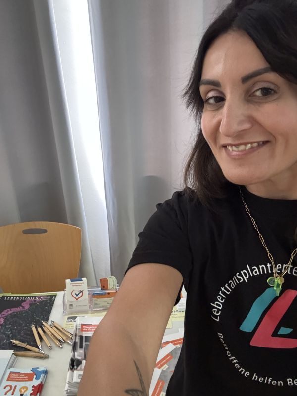 Begleitend dazu präsentierte LD e.V. einen Infostand, der von unserer Ansprechpartnerin für Eltern mit transplantierten Säuglingen und Kleinkindern, Sabrina Cavallaro, betreut wurde. Hier konnten sich die Besucherinnen und Besucher informieren, persönliche Fragen stellen und Informationsmaterialien sowohl zur Organspende als auch zum Thema Lebertransplantation und unseren Verein mitnehmen.