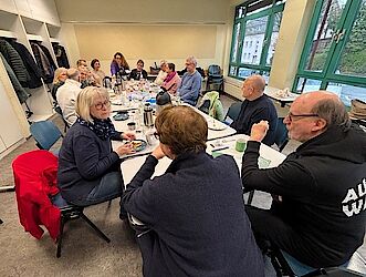 Für unser Treffen stand uns ein eigener Raum zur Verfügung, der sich schnell mit rund 30 Teilnehmenden füllte. Da wir an drei Tischen saßen, ergaben…